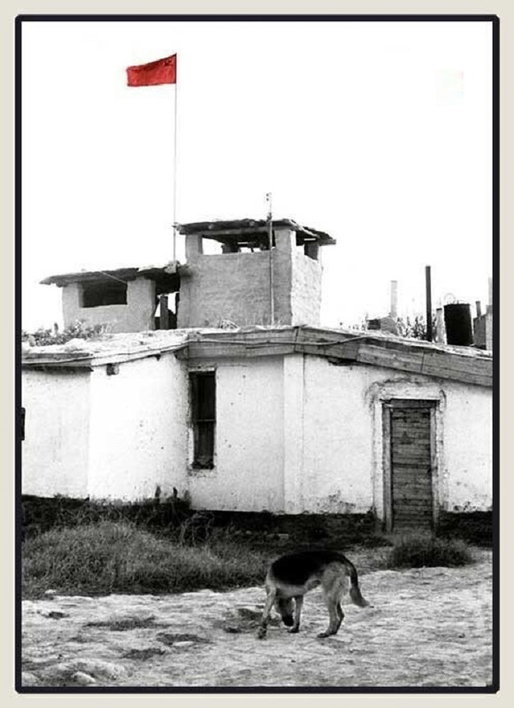 В ЗАСТАВКЕ: флаг СССР поднятый на крышами пограничной заставы "Кайсар", коллажное фото (компьютерная колоризация), б/д, правообладние неизвестно.